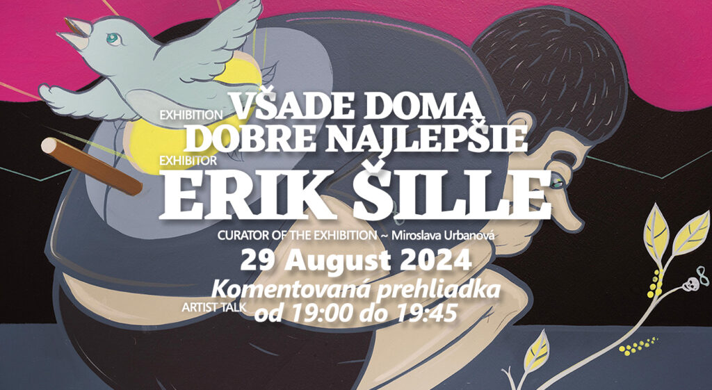 We would love to invite you to the artist talk happening on Thursday 29. 8. 2024 from 7 pm until 7:45 pm. Erik Šille and the curator Miroslava Urbanová will talk about the works of the exhibition Všade doma dobre najlepšie.