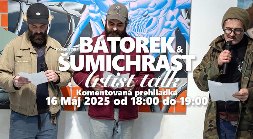 We would love to invite you to the artist talk happening on Friday 16. 5. 2025 from 6 pm until 7 pm. Ján Bátorek, Michal Šumichrast and the curator Pavol Čejka will talk about the works of the exhibition Every day same things happen.