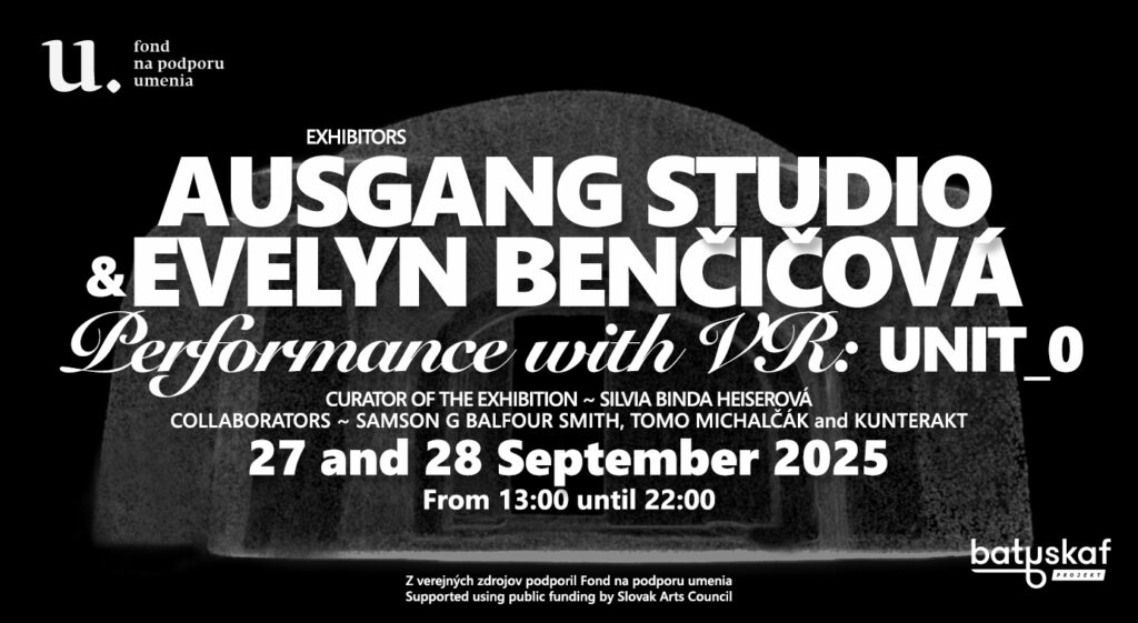 On Saturday, September 27 and Sunday, September 28, 2025 from 1:00 PM to 10:00 PM, we would like to welcome you to the multi-genre performance with virtual reality UNIT_0 by AUSGANG studio and Natalia Evelyn Bencicova.