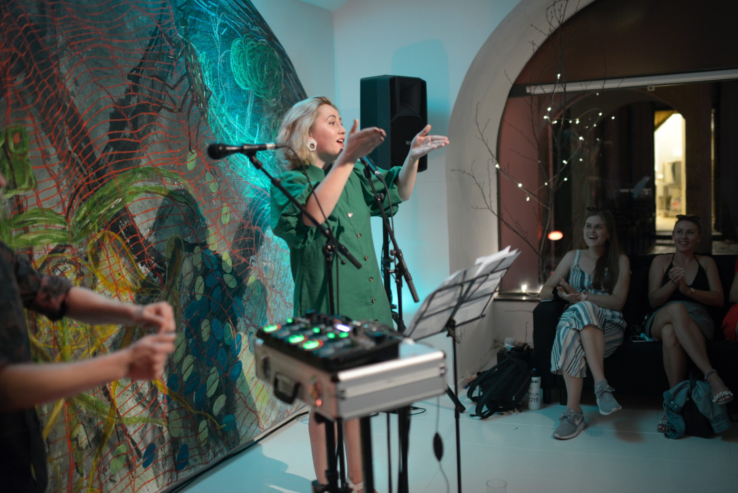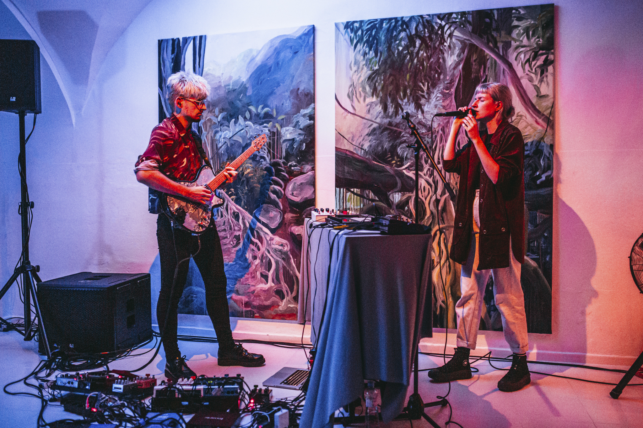 ▲ 21. august 2020 Komentovaná prehliadka výstavy Juliany Mrvovej a živé vystúpenie hudobníčky Nory Ibsenovej (Fallgrapp)