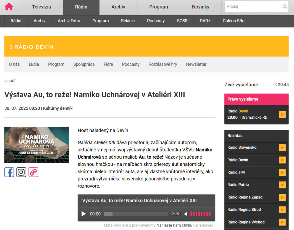 Interview with Namiko Uchnárová in the Cultural diary of Radio Devín by ATELIER XIII2. September 2025 LINK Further reading Older post Newer post