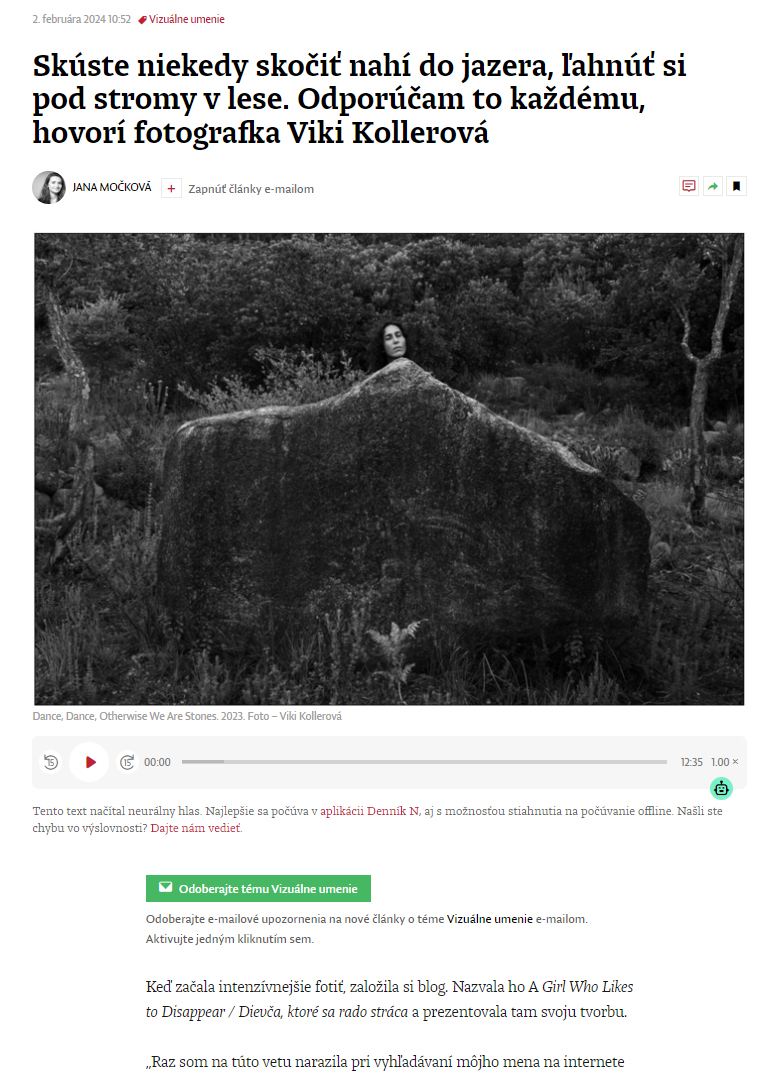 Interview with Viki Kollerová in the Denník N section visual arts show by ATELIER XIII2. February 2024 LINK Further reading Older post Newer post